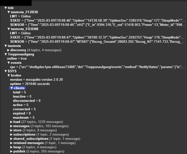 Wenn ich im MQTT Explorer nach sehen… scheinen diverse Verbindungen