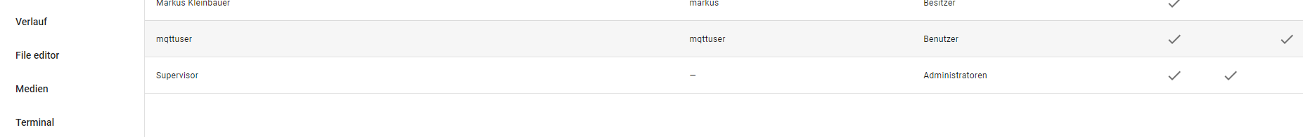 Dieser unter HA angelegt User wird dann auch bei der MQTT Client Integration