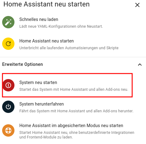 Dann - wie nach jeder Addon Installation - HA System neu starten