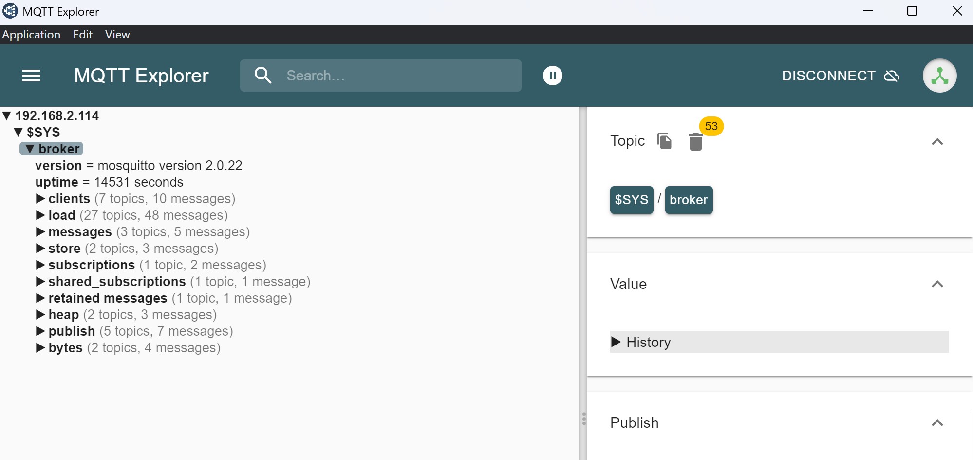 Leider bekomme ich im MQTT Explorer keine Topic mit Home angezeigt und somit auch nicht die beiden Parameter.