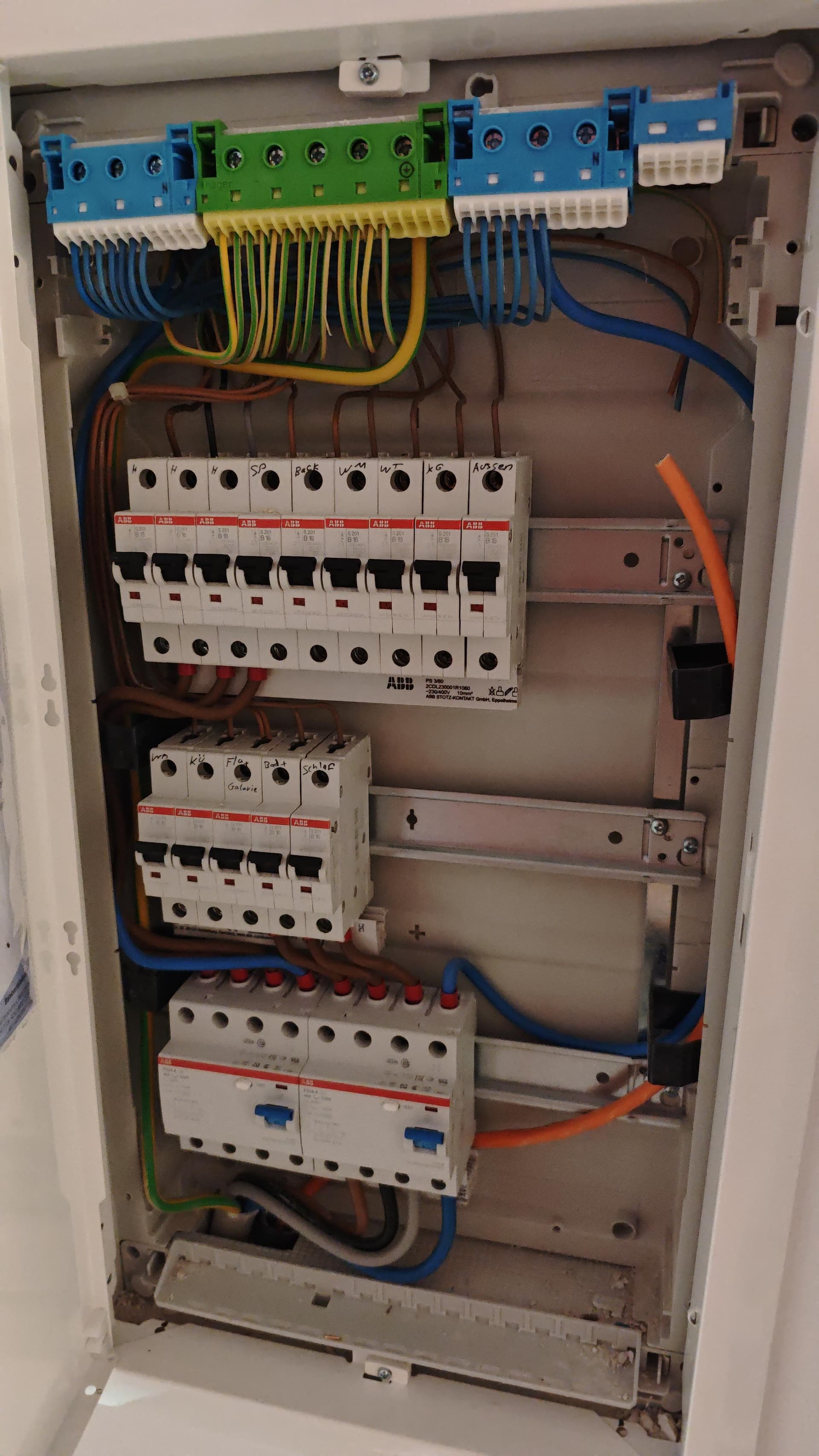 Bei der zweiten Reihe B16-Automaten verhält es sich ebenso. So kannst du die richtigen Phasen finden und anschließen. Achso: Kaufe im Baumarkt am besten starre Adern (1,5 mm² oder 2,5 mm²), damit du keine Aderendhülsen brauchst