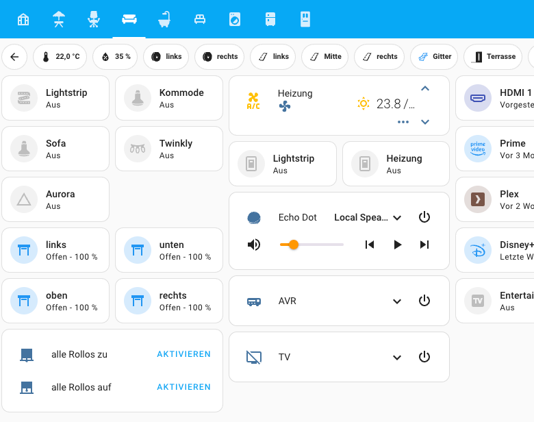 Ich habe bei im Dashboard diverse Mushroom Cards eingebunden und nach dem HA Core Update auf 2024.2.1 das Problem dass auf allen meinen mobilen Endgeräten die Icons nicht mehr angezeigt werden - auf meinem iPhone und dem Samsung Smartphone meiner Frau in der HA App & auf zwei Fire HD Tablets per Fully Kiosk Browser. Per Webbrowser auf PC & auch auf meinem iPhone ist alles ok… es gibt einen mittlerweile geschlossenen Case auf github dazu und da heisst es nur dass sowohl HA wie auch die Endgeräte neugestartet werden müssen und überall der Cache geleert werden soll - das hilft mir aber nicht weiter da sich der Cache auf den Geräten in der Regel nur auf die Webvariante bezieht (ich wüßte nicht wo ich auf dem iPhone den Cache der App löschen kann) und per Webbrowser das Problem eben nicht auftritt… hat zufällig wer das gleiche Problem bzw. eine Idee was ich außer der kompletten Neuinstallation der App / Fully Kiosk Browser auf allen Endgeräten sonst noch machen kann? Das möchte ich nämlich unter allen Umständen vermeiden…