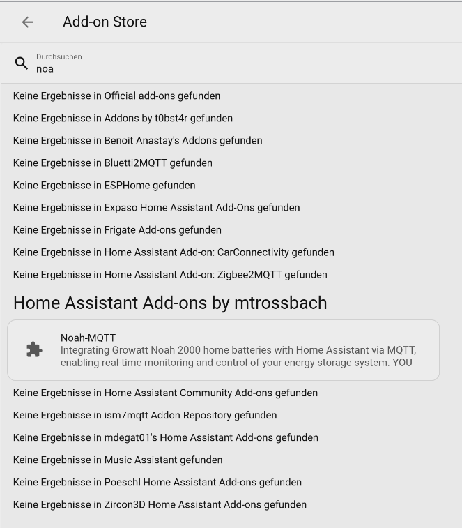 Die 2. meiner Fehlermeldungen habe ich natürlich selbst verursacht - klar, noah-mqtt ist ein Addon, konnte/durfte natürlich so nicht hinzugefügt werden
