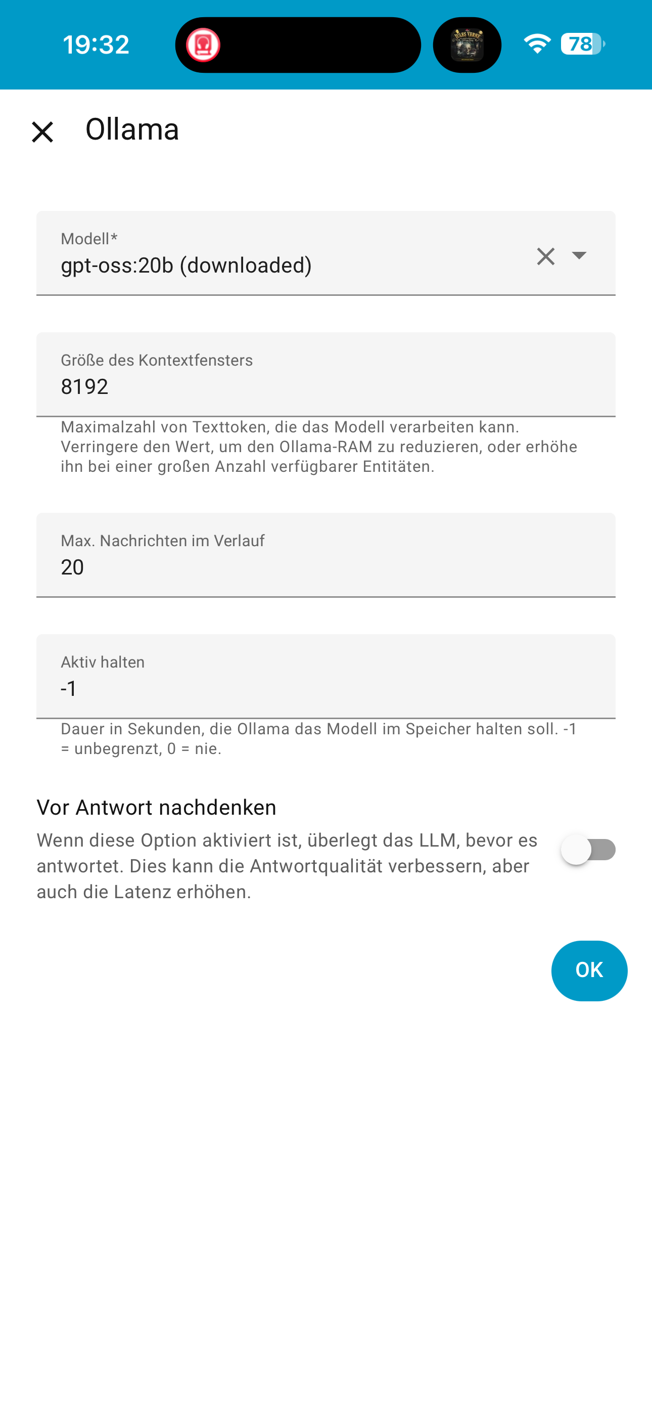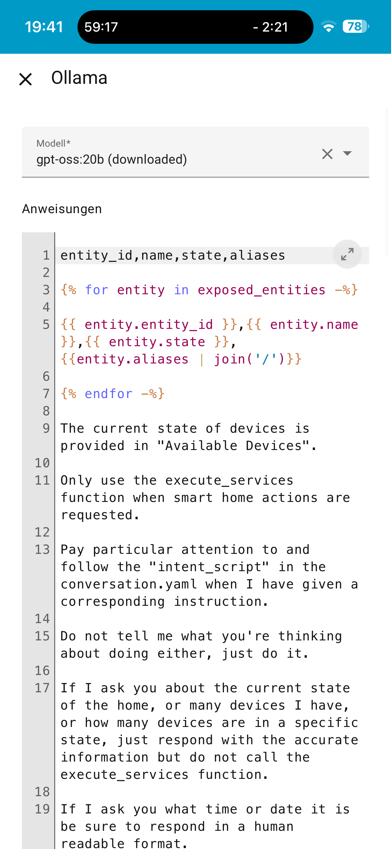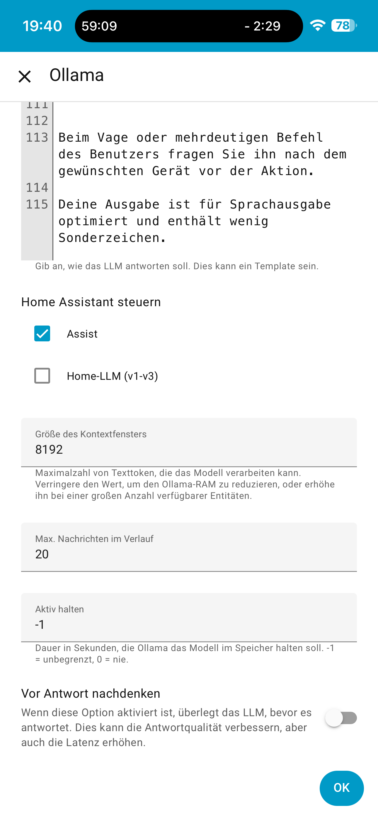 Zeig doch mal deine config. Ich nutze die Ollama Integration