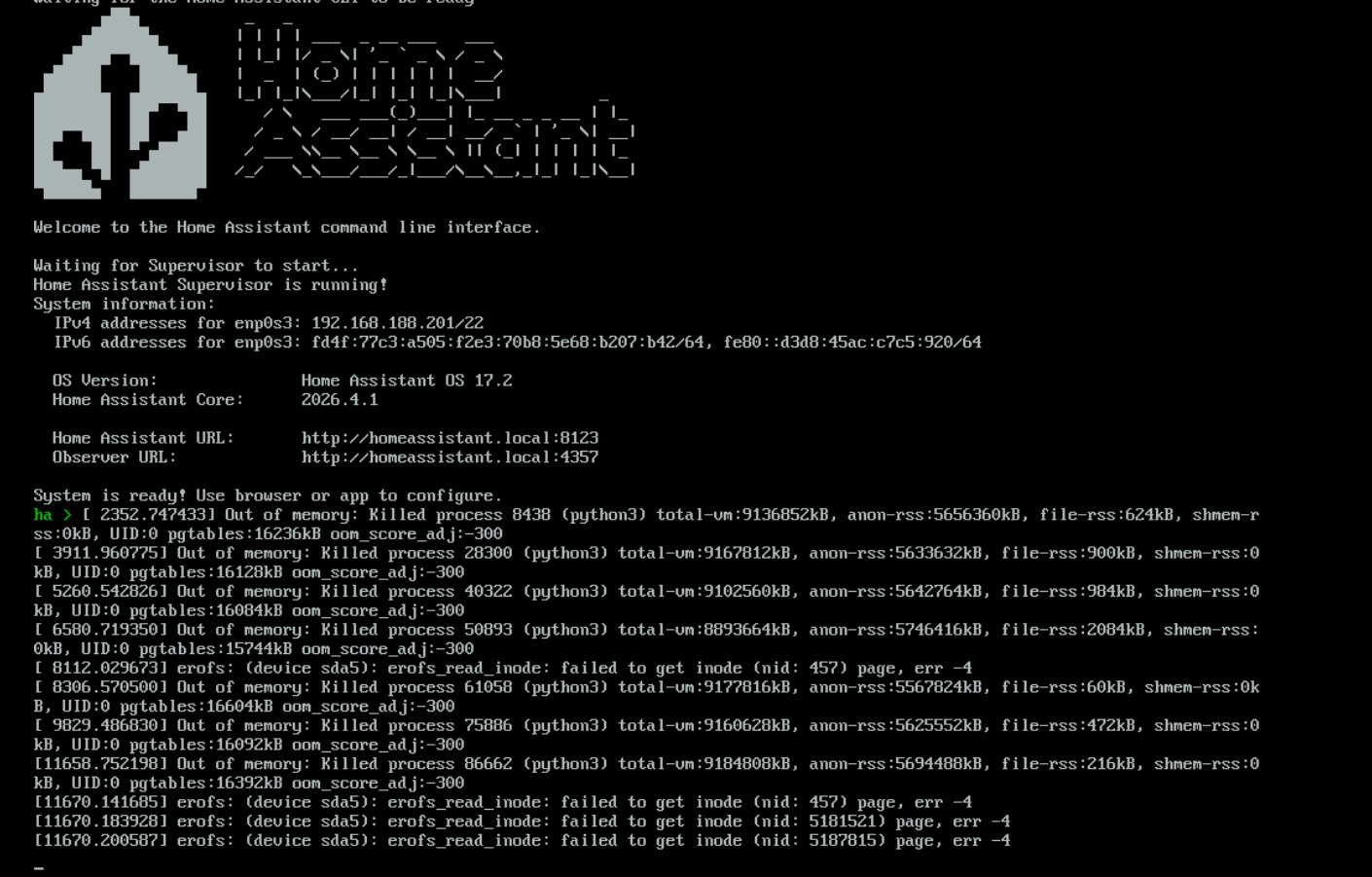 Ich habe nach dem Update auf Home Assistant OS 17.2 ein massives Problem mit meinem System.