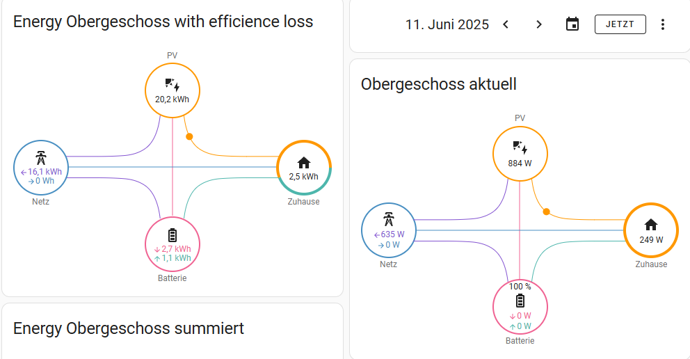 jetzt habe ich gerade die Power Flow Plus Card installiert und identische Sensoren eingetragen wie im Energiebashboard und sehe dann dies …