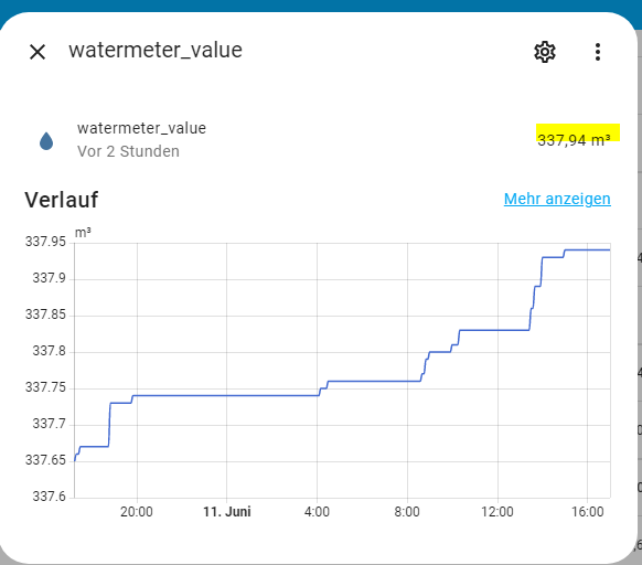 Da gibt es nichts falsch zu machen, trotzdem sind die Anzeigen nicht identisch (und gerade fällt mir auf daß der Verbrauch eigentlich in m³ lauten müsste und nicht in L und der Sensor liefert auch m³ - wieso steht im Energiedashboard dann L)?