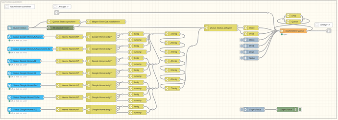Helfen kann man sich, in den man eine zeitliche Warteschlange anlegt, wenn man weiß, wie lange ungefähr eine Nachricht dauert. So hatte ich es auch lange Zeit (ohne KI). Aber jetzt, wo ich sowieso meinen Nachrichtenflow neu anpacke, arbeite ich intelligenter. Ich prüfe, wann der oder die Lautsprecher fertig mit der Ansage sind und sende dann die nächste Nachricht aus der Queue. Aber auch das ist nicht einfach zu realisieren. Ich muss unterscheiden, ob gerade Musik darauf spielt oder eine Ansage. Musik wird natürlich sofort unterbrochen (und bei mit auch noch ein Snapshot erstellt, so dass sie nach den Ansagen weiter läuft). Außerdem brauche ich die Google-Lautsprecher synchronisiert, wenn sie gleichzeitig (also z. B. im ganzen Haus) sprechen. Das ist alles realisiert.