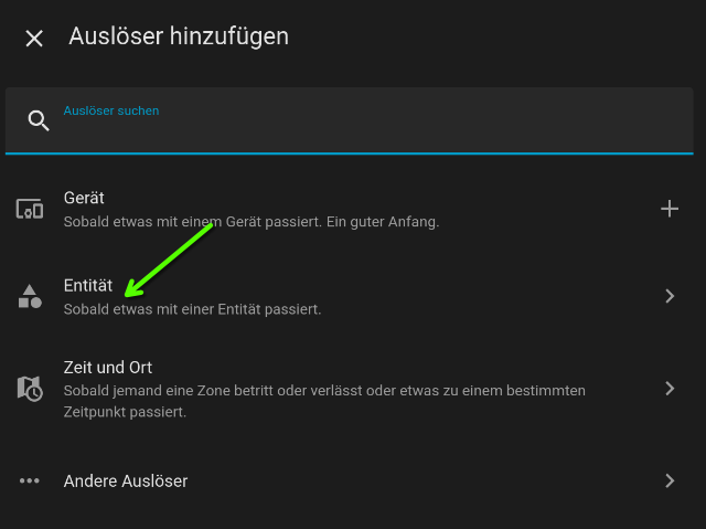Gibt natürlich noch weitere Entitäten, die sind für mich aber erstmal uninteressant. Leider kann ich damit keine Automation erstellen, in der Auswahl der Entität bietet sich nur folgendes an: