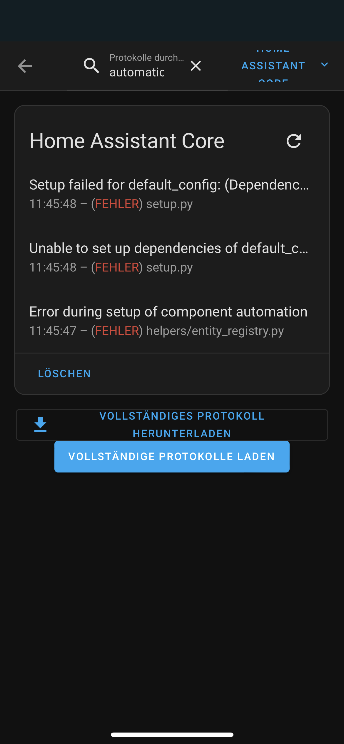 Error during setup of component automation