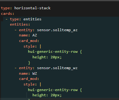 Bei Card-Mod laufen noch einige Dinge nicht, type: glance der .header, type: markdown-card die Höhe (hab Scrollbalken) und bei type:entities funktioniert zwar die Höhe, aber auch da streiken andere Attribute, wahrscheinlich line-hight.