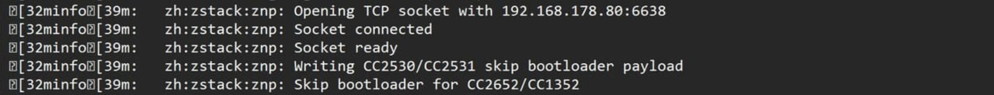 [2025-06-15 21:27:59] e[32minfoe[39m: zh:zstack:znp: Opening TCP socket with 192.168.178.80:6638