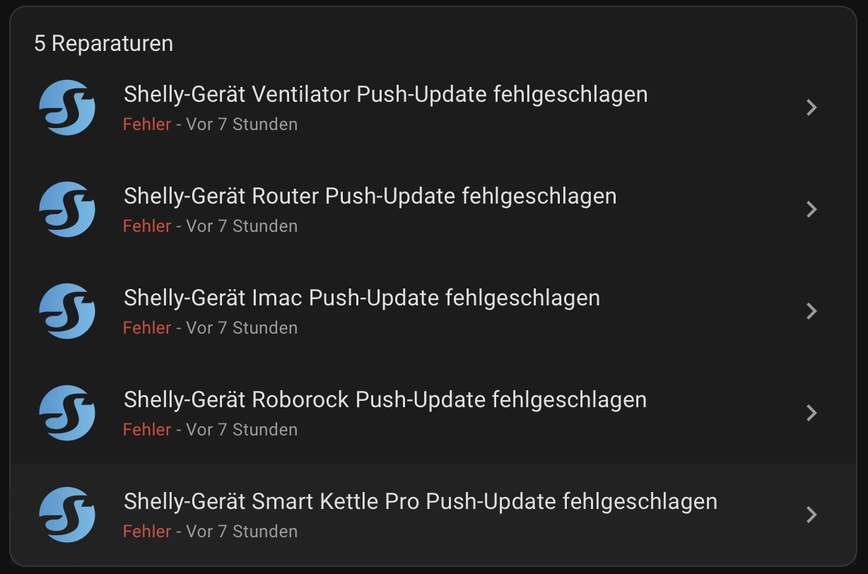 Die Hilfe zu dem Fehler habe ich auch gelesen und geprüft, ob bei meinen Shellys CoIoT aktiviert ist, was aber zutrifft. Ich nutze von HA die Version 11.2