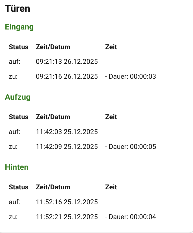 |zu:|{{ states('sensor.haupteingang_last_closed') }} | - Dauer: {{