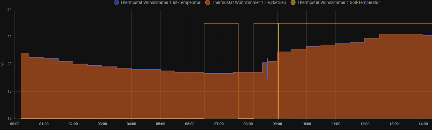 Das Problem hierbei ist nur, dass die Zeit, bis die gewünschte Temperatur erreicht ist sehr lange ist. Mit den alten analogen Thermostaten stellte man die Temperatur ein und die Heizung wurde “richtig” warm und regelte dann irgedwann runter. Bis das Zimmer warm war ging es relativ schnell.