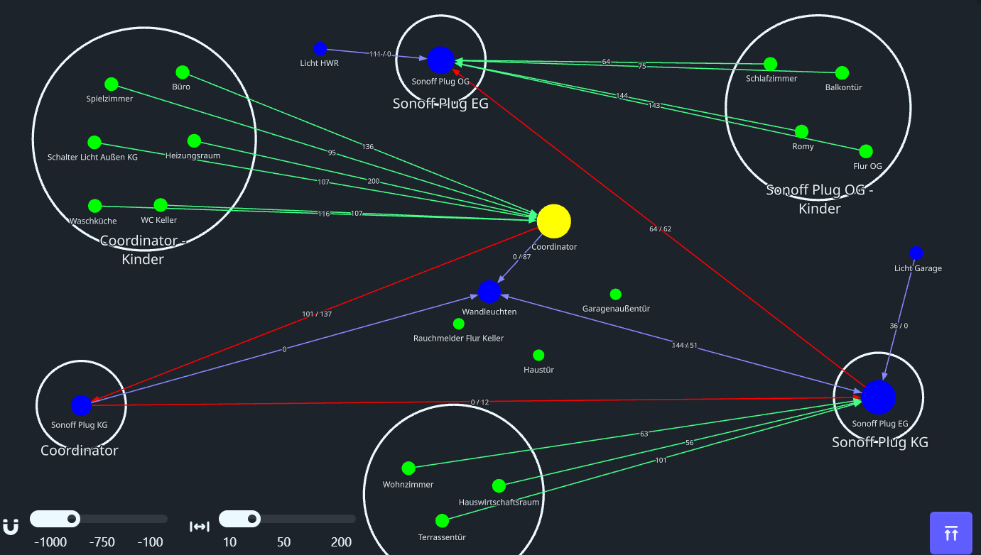 Ich nutze den Sonoff Dongle M (Dongle-M_48B4 - Ethernet) via Z2M im Keller als Coordinator. Alle daran angelernten und in der Nähe befindlichen Sensoren funktionieren einwandfrei. Dabei handelt es sich um Rauchmelder von Honeywell und Tür-Fensterkontakte von Aqara. Um die Reichweite zu vergrößern hatte ich anfangs die Steckdosen von IKEA, was nicht wirklich funktioniert hat. Da der Dongle von Sonoff ist, habe ich nun ebenfalls die Zigbee-Steckdosen von Sonoff eingerichtet, auf allen drei Etagen jeweils eine. Daran habe ich die jeweiligen Zigbee-Geräte angelernt. Dies hat auch funktioniert. Zusätzlich habe ich Shelly 1 Gen 4 verbaut, um die Reichweite nochmals zu erweitern. Trotzdem gehen die Aqara Geräte nach einer Weile immer Offline, obwohl sie sich in der direkten Nähe (< 2 Meter) einer Sonoff-Steckdose befinden oder zeigen nicht den aktuellen Zustand (offen/geschlossen) an. Die Aqara Geräte in der Nähe des Coordinators gehen nicht offline und funktionieren einwandfrei.