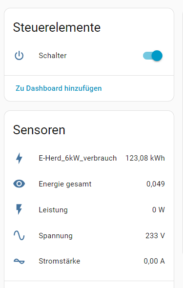 Damit repräsentiert der so erstellte Binary Sensor den Zustand des Herdes, An oder Aus.