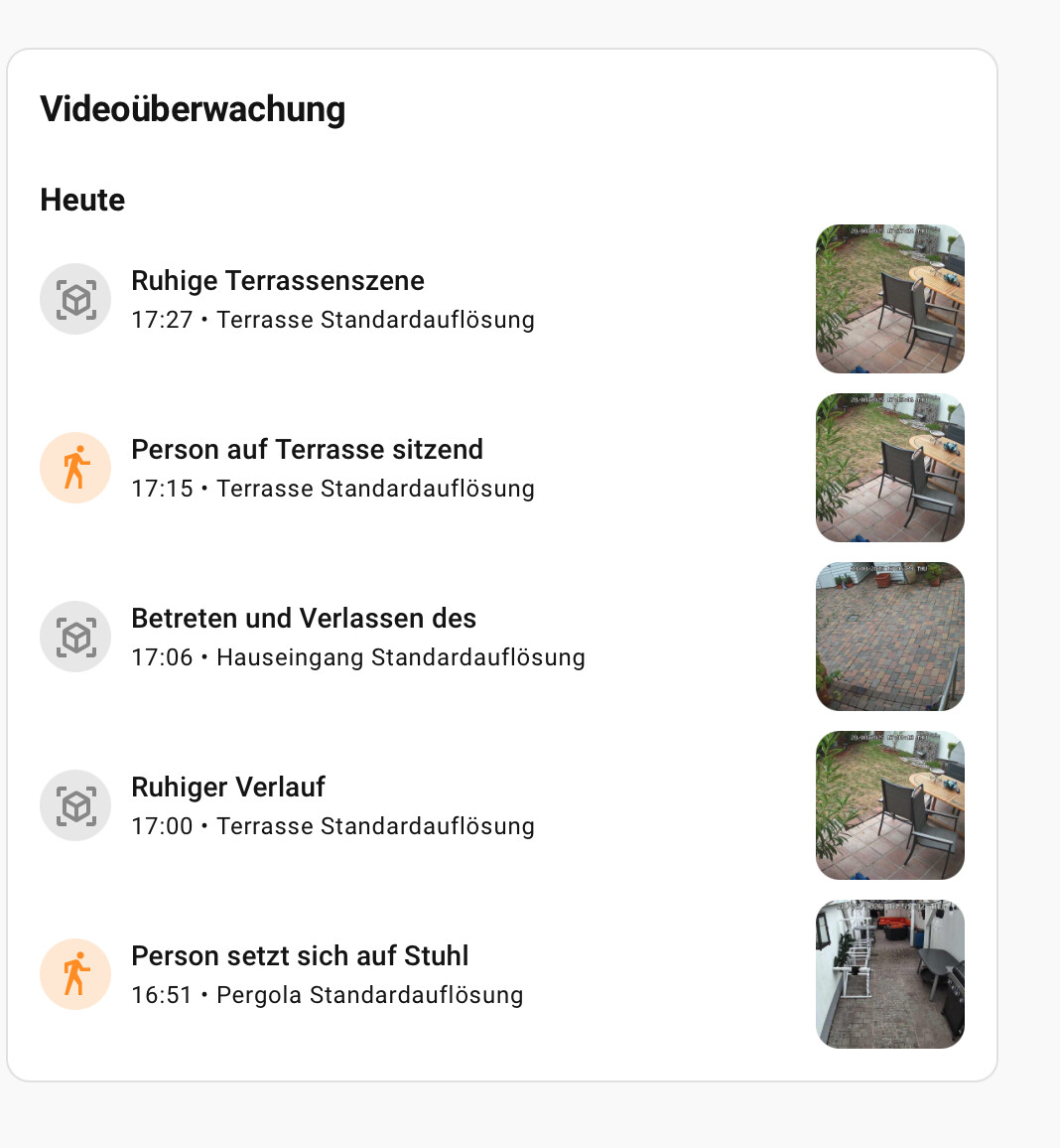Als Mieters Thema sehe ich das LLM sofort nach erkennen der Bewegung startet. Bei dem Event um 17:06 kommt eine Person hinten links durch die Tür, ist aber dort natürlich noch gar nicht zu erkennen so das die memory Funktion von LLM Vision nicht greifen kann.