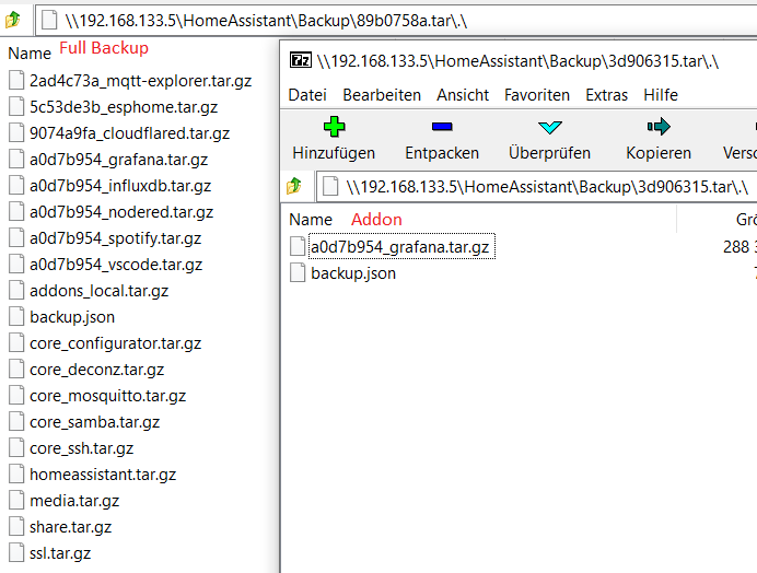 Rückspielung via Shell mit ha backup restore <Filename ohne .tar) geht nicht da er das Backup File nicht findet obwohl es auf dem Server im Verzeichnis /backup liegt.