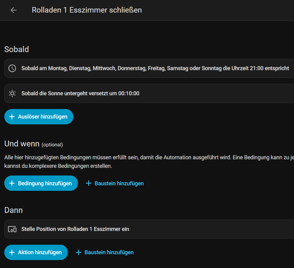 Das Blueprint CCA habe ich mal für ein Rolladen eingerichtet. Schön hier ist auch bereits die Verschattung integriert, aber leider kann ich auch hier den Zeitoffset nicht variabel machen.