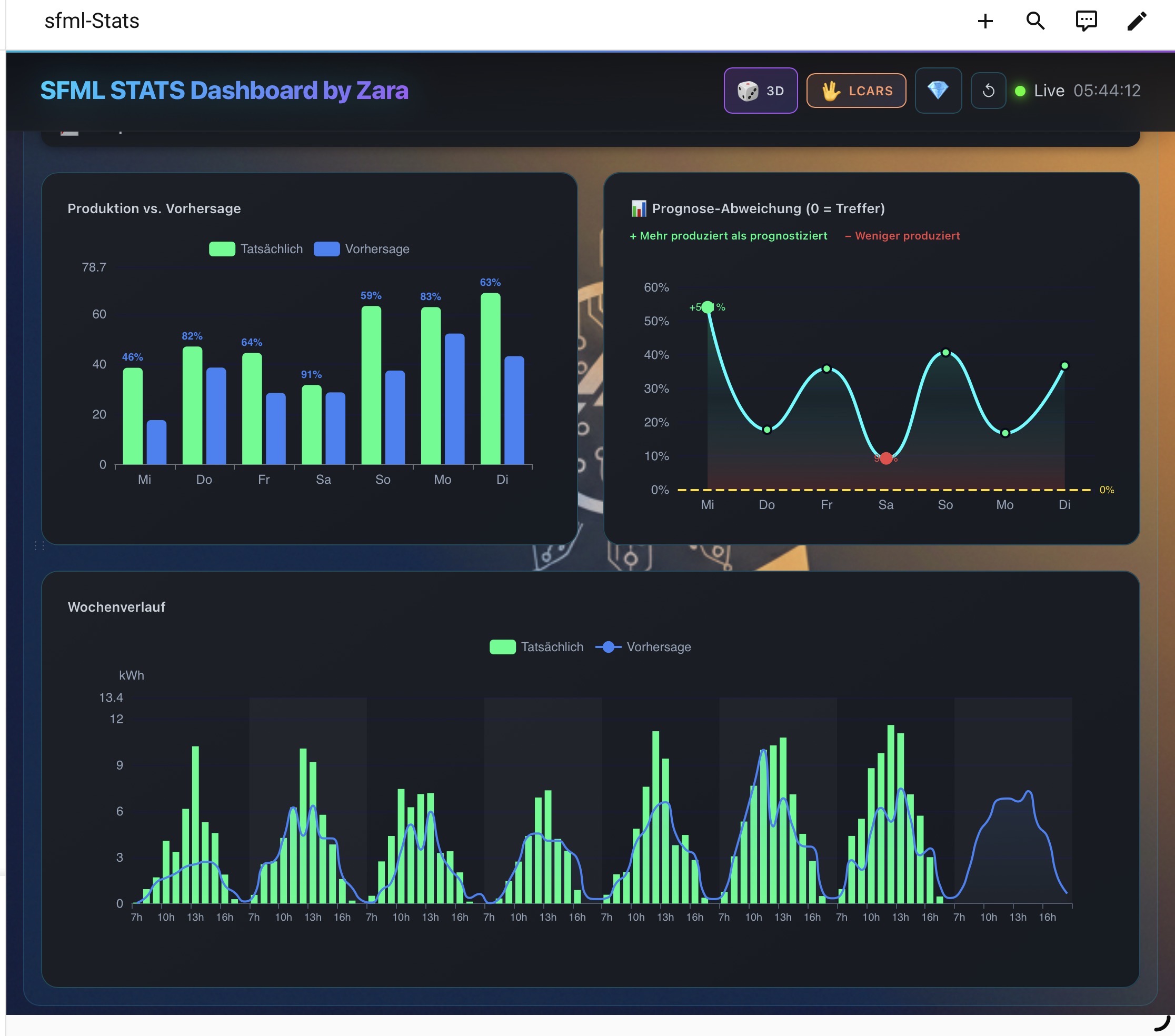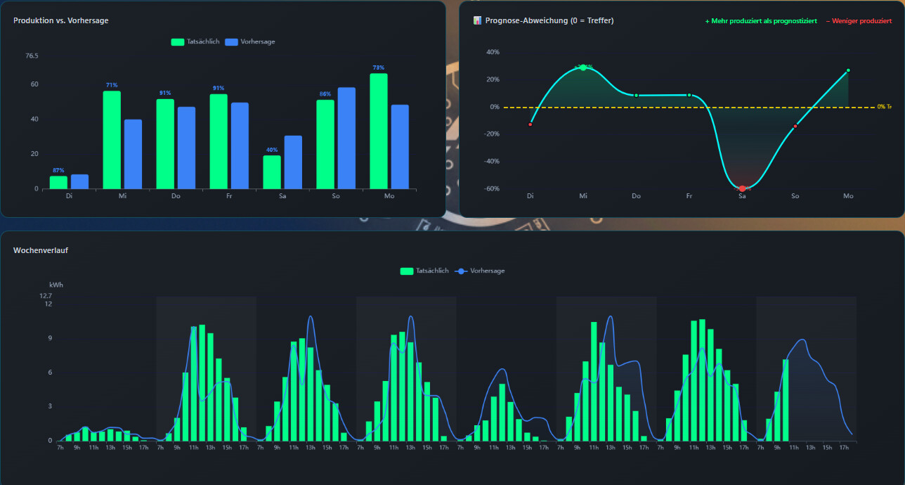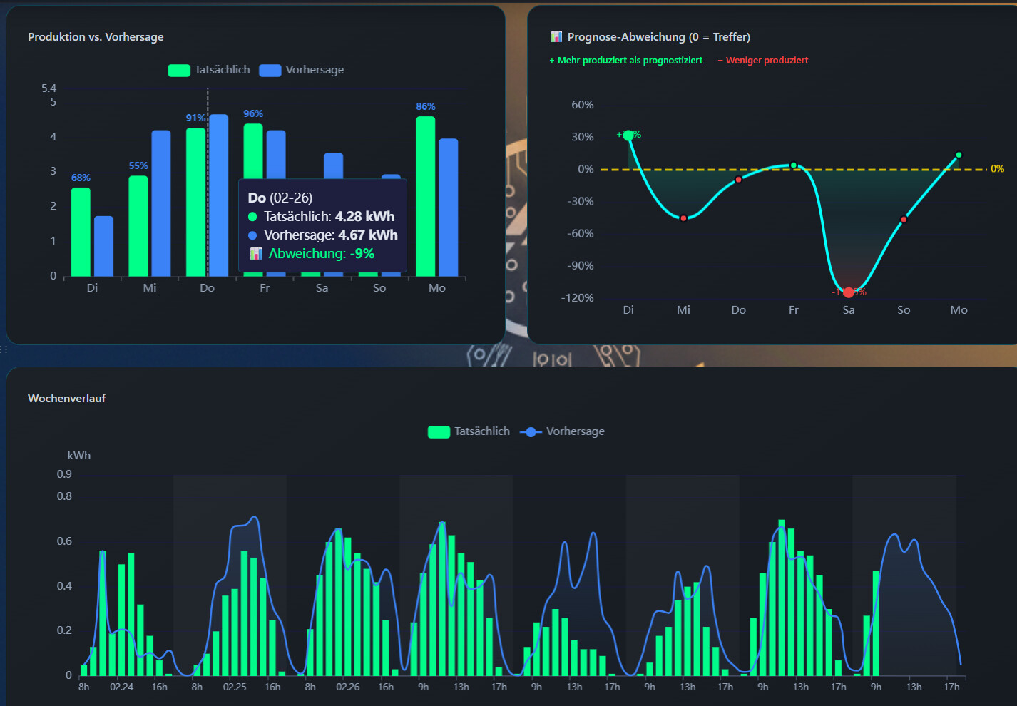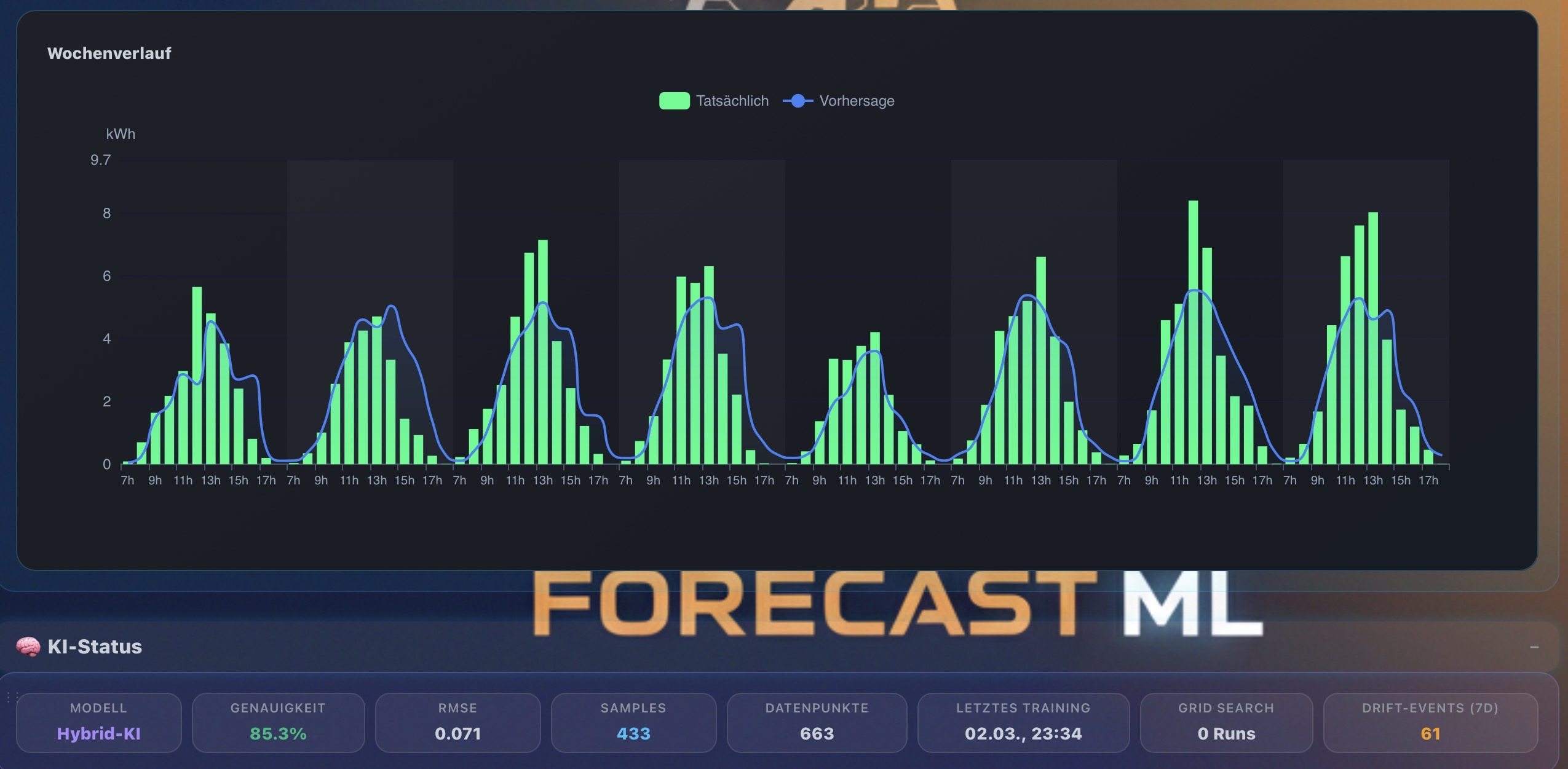 b. Zickte mein Tages-Gesamt-kWh Sensor über 2 Tage mit Wertesprüngen, auch kurz vor Mitternacht. Das war offensichtlich der bei mir nach wie vor wackeligen Sunspec Integration geschuldet. Aber das Problem sollte ich nun über entsprechende Sensor-Templates abgefangen/gefixt haben. Ich beobachte erstmal weiter, bevor ich ggf. nochmal komplett neu starte. Keine Ahnung, wie lange ggf. leicht kontaminierte historische Daten/Sensorwerte sich auf die aktuellen Prognosen auswirken…?