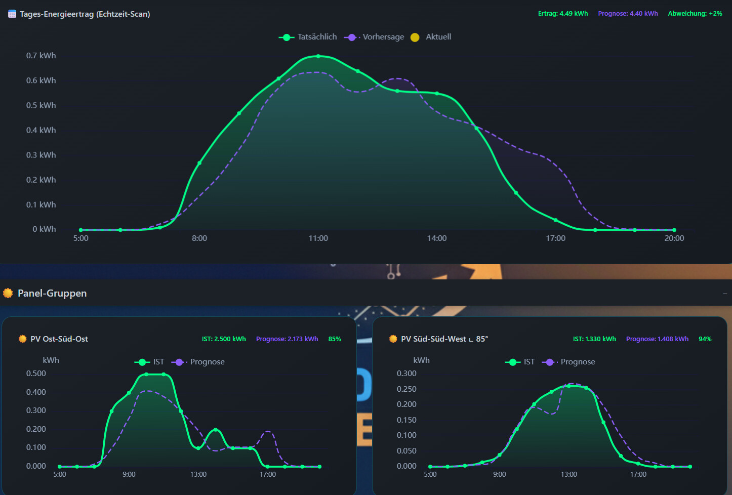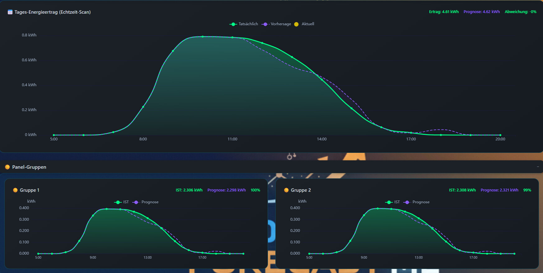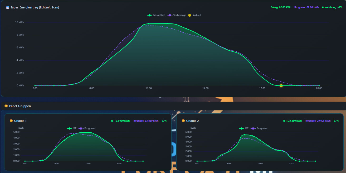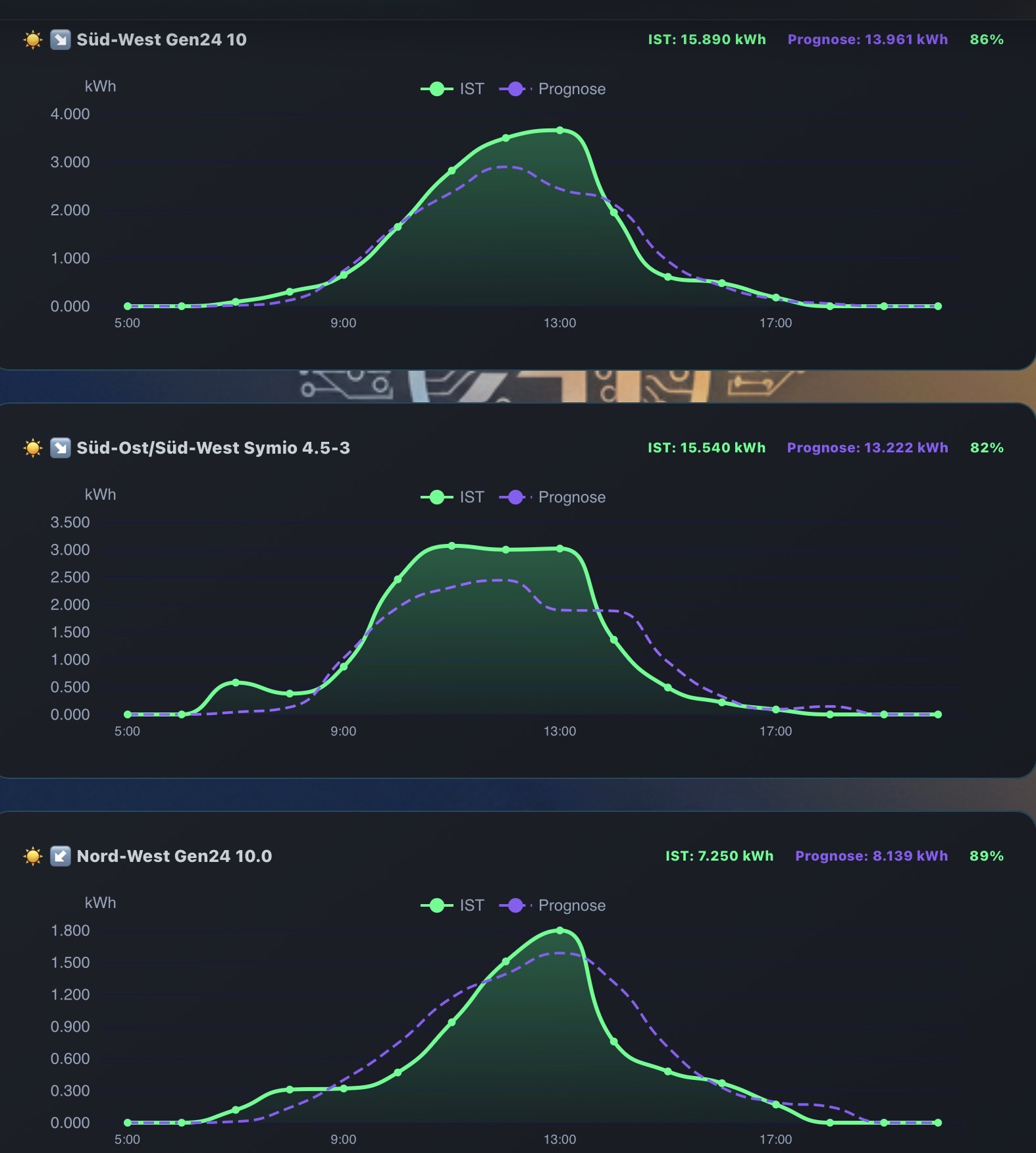 Bei mir schauts gerade genauso aus wie bei Dir - Vorhersage weit unter Ertrag. Wir haben ja ähnliche Anlagengrößen und Anzahl Panelflächen. Vielleicht liegt es ja (noch) daran - das alte Großanlagen Problem/Begrenzung…