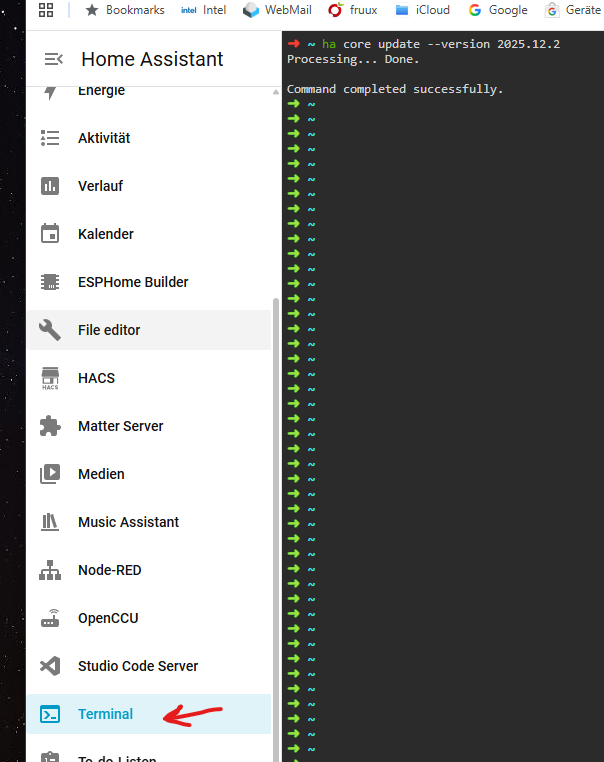 Hallo Thomy ich bin noch nicht so fit in Home Assistant. Über welche Console in HA hast Du den Befehl ha core update --Version 2025.12.2 eingegeben? Ich würde gerne das gleiche tun. Danke Dir