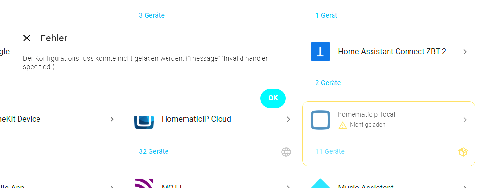 Seit HA Core 2026.1.0 läuft die Integration OpenCCU zwar als Dienst wird aber in Home Assistant nicht erkannt: