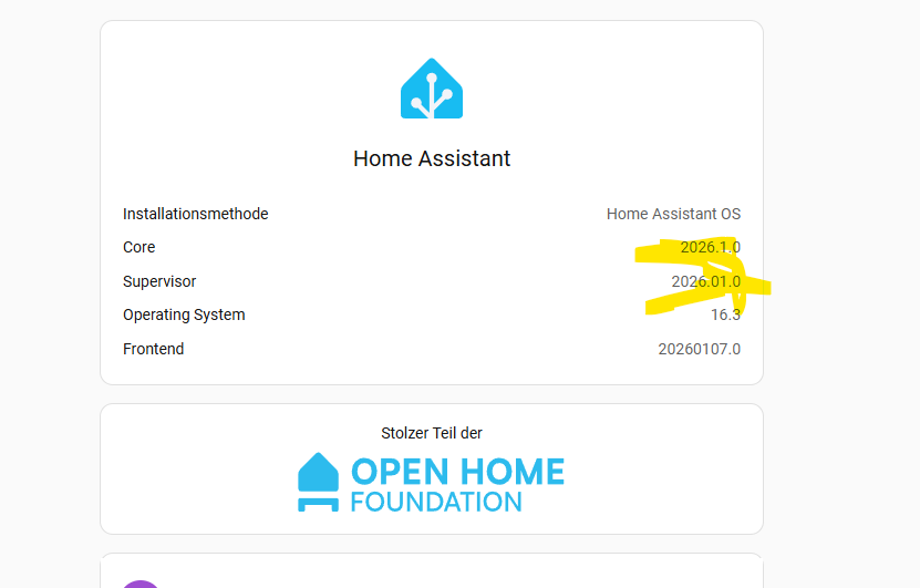 Die HA Versionen bei mir sind identisch mit dem, was Du im Screenshot hast.