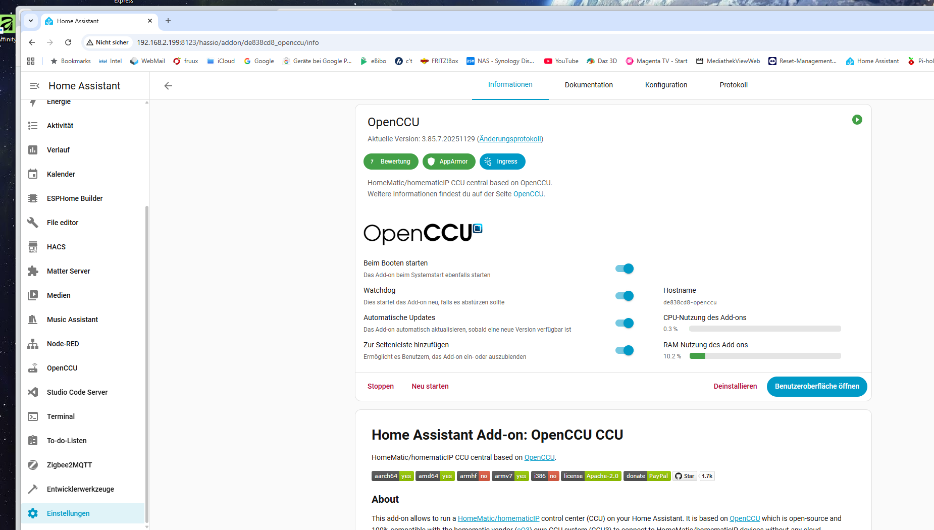 Allerdings läuft bei mir OpennCCU als VM unter Proxmox und nicht als Add-On.