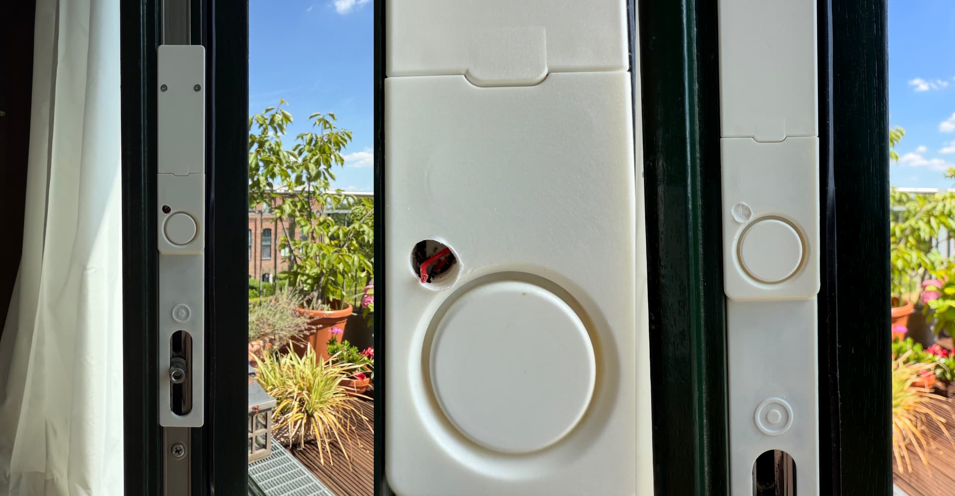 Für unsere Holzfenster passen die Sensoren so gerade, der Zapfen reibt ein wenig am Sensor, das tut der Funktion aber keinen Abbruch. Hier wäre vielleicht ein schmalerer Rand ein Verbesserungsvorschlag, um noch mehr Fenstertypen zu unterstützen.