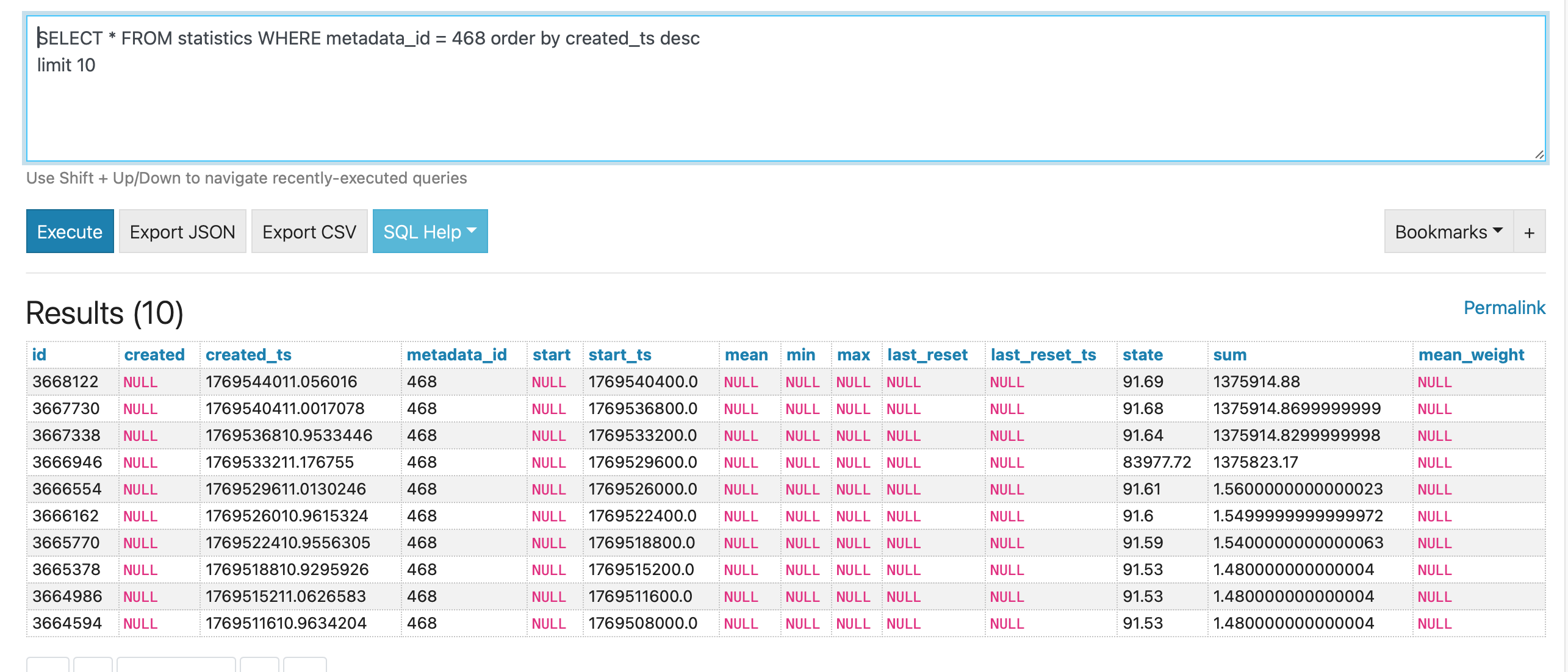 SELECT * FROM statistics_short_term WHERE metadata_id = 468 order by created_ts desc