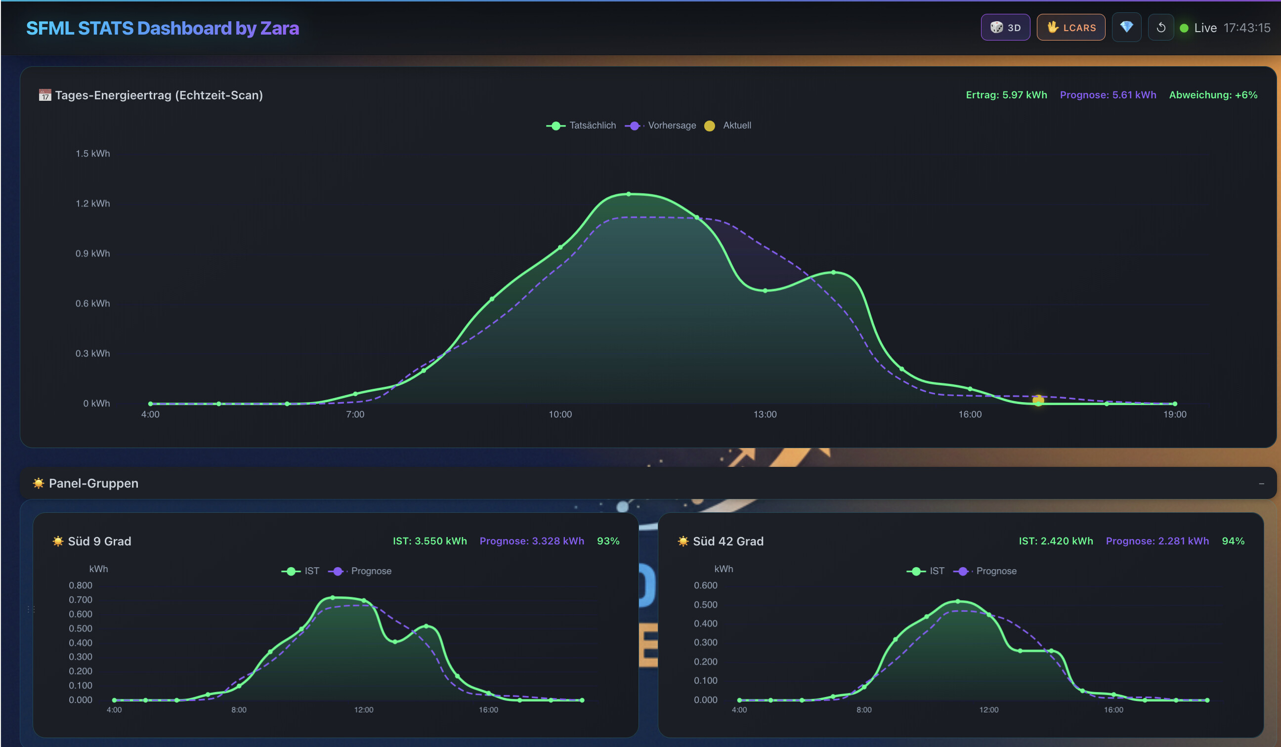 ich habe nochmal etwas an meinen Prognose-IST-Kurven herumgeflext. Jetzt kann man sich nicht nur den heutigen Tag, sondern auch die Vortage anschauen. Sämtliche Daten stammen aus der SFML-Datenbank von Tom. Mein Tool ist besonders für diejenigen von Euch interessant, die SFML-STATS mangels passender Hardware nicht betreiben können. Ihr findet es hier .