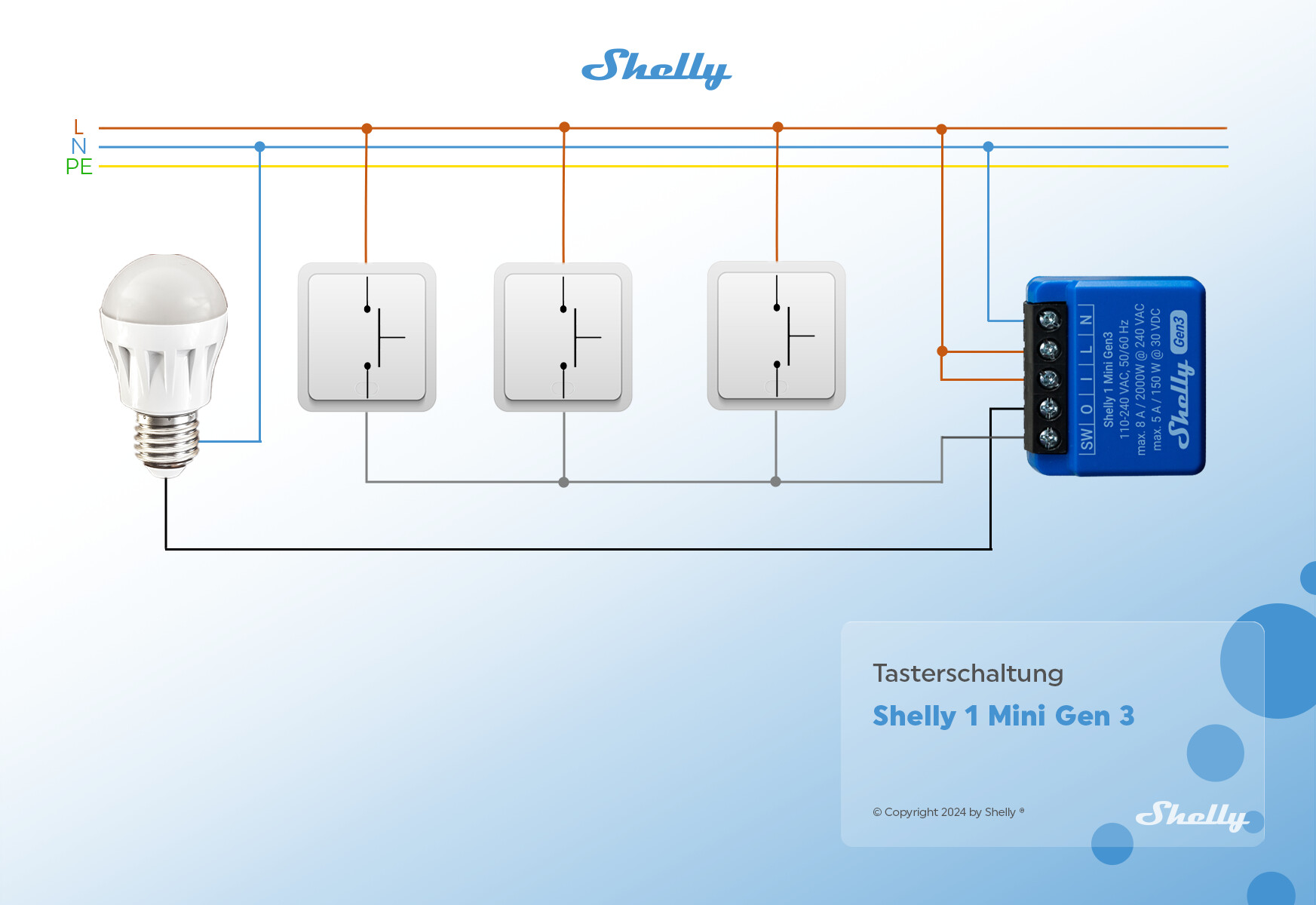 Nachdem ich meinen Shelly 1 entsprechend angeschlossen habe (O: graue Ader, I und L an braun, einen neuen Draht aus dem Schalter von der Stelle, an der grau hing zu SW, den freien blauen Draht an N) und den Shelly auf Inputmodus switch, Outputmodus Edge gestellt habe, funktioniert es aber leider nicht wie erwartet. Auch ein Firmwareupdate hat keine Abhilfe geschaffen.
