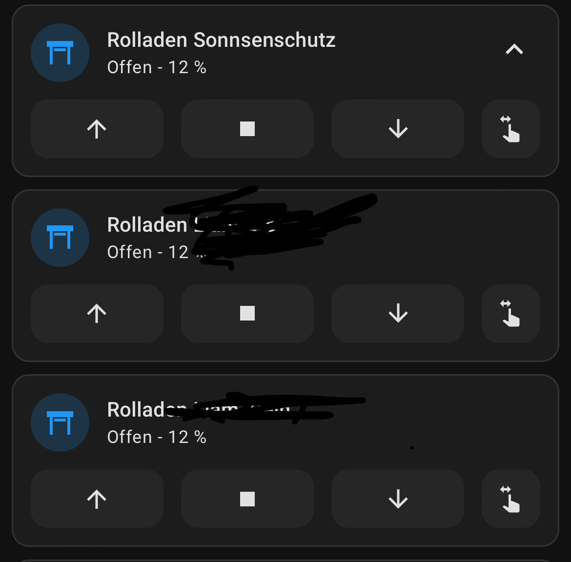 Erste Karte steuert alle Sonnenschutz Rollos auf einmal und für die einzelne eben den einzelnen Rollo