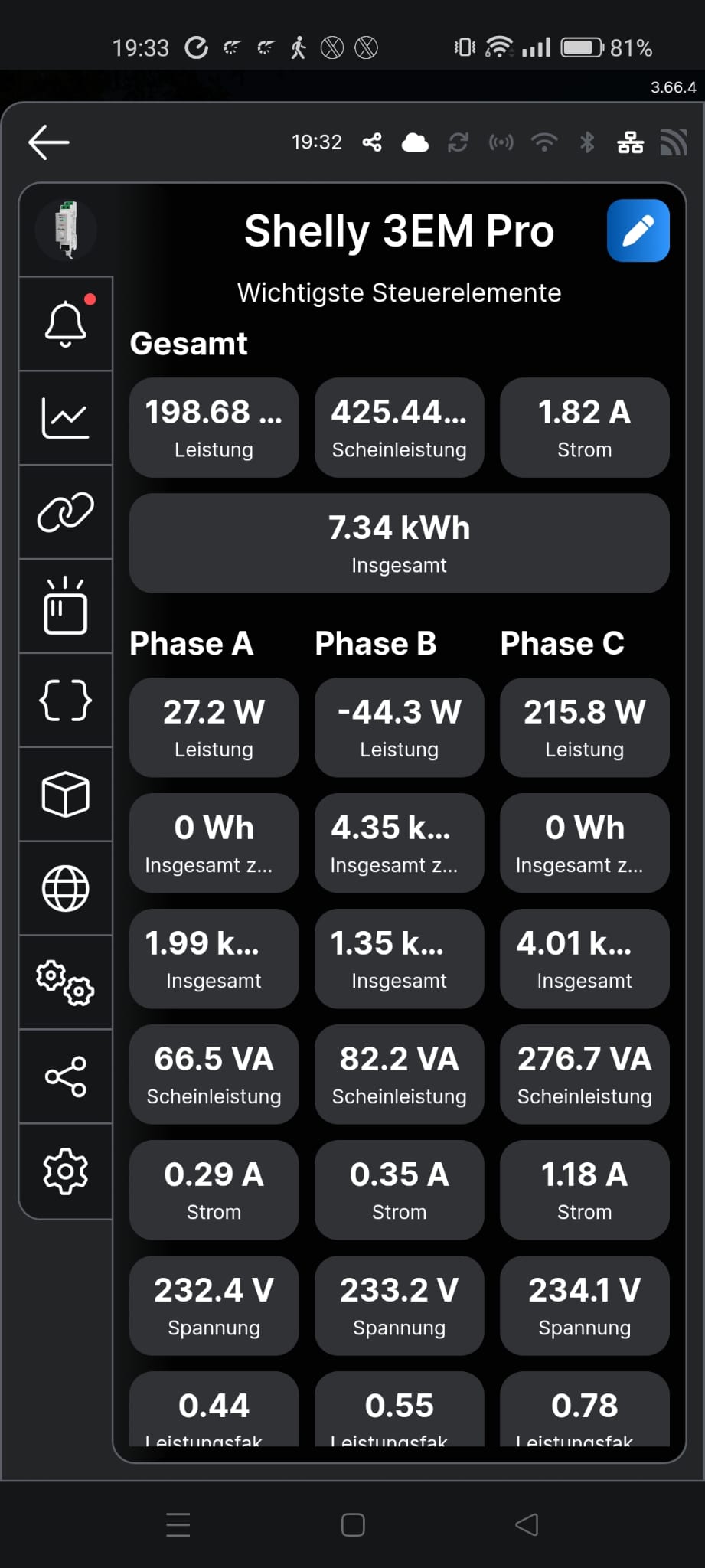 ich habe endlich einen Shelly 3EM einbauen lassen, aber der erste Eindruck ist ziemlich enttäuschend.