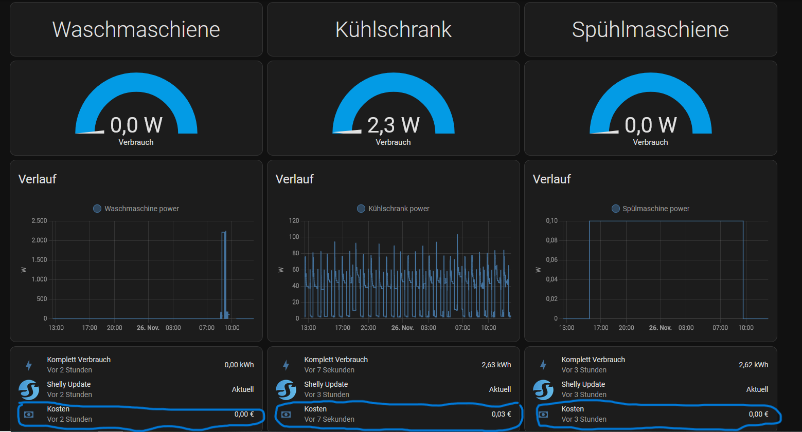 Da ich ein anfänger bin möchte ich meine shelly pm1 usw die energie kosten errechen lassen und in mein eigenen Dashbord anzeigen lassen.Ich weis das man von energie dashbord das einrichten kann was ich auch gemacht habe. Was muss ich machen damit es funktioniert? Es gibt ein Entität von shelly was er von der cloud holt aber die nicht überein stimmen. Danke im vorraus