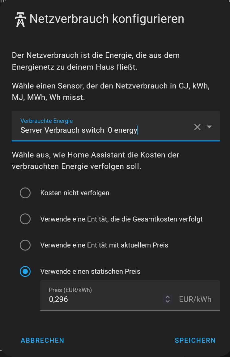 Naja, zuerst gehst du auf der Energieseite oben rechts auf die 3 Punkte, und wählst: Energiekonfiguration.