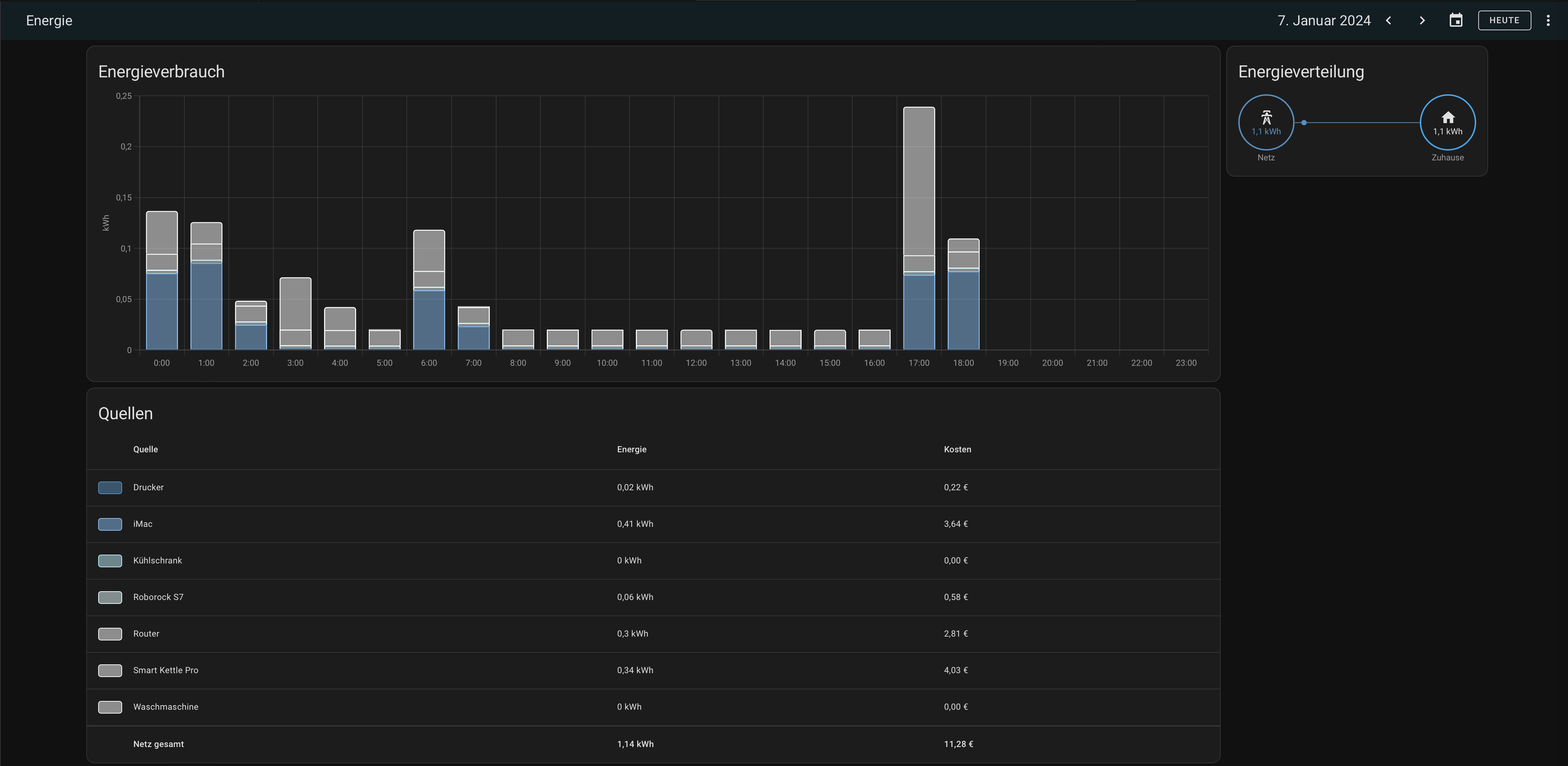 Sieht bei mir dann so aus. Oben das Gerät und unten der Preishelfer. Und schon wird das im Energie Dashboard angezeigt.