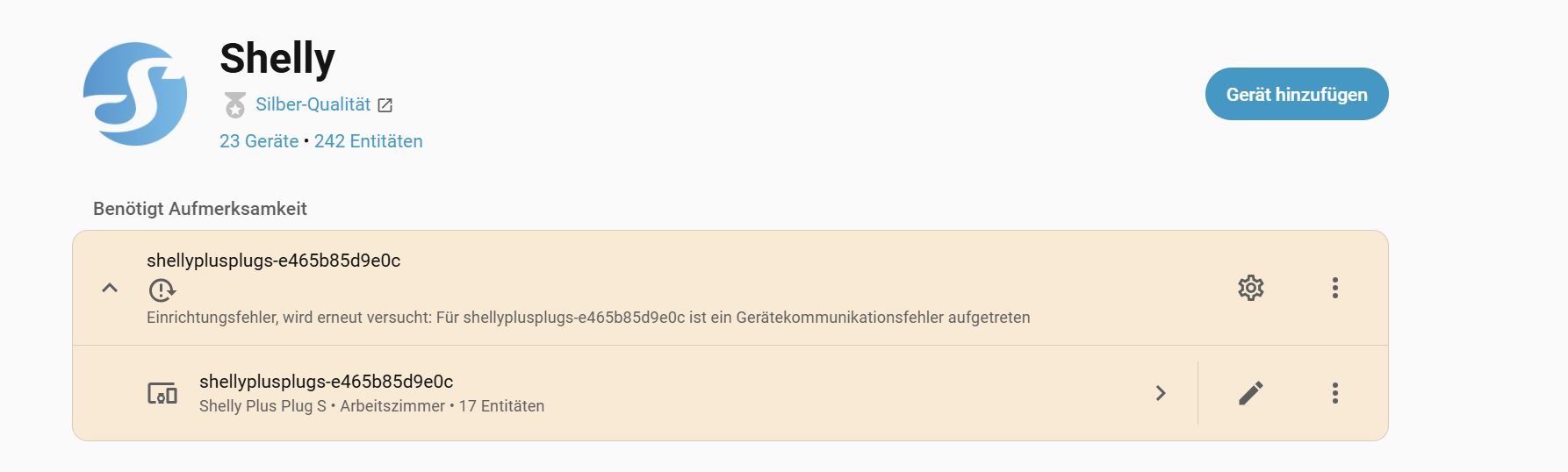 Die Geräte selber funktionieren und lassen sich auch über die Shelly App problemlos steuern, nur die HA-Integration funktioniert nicht.