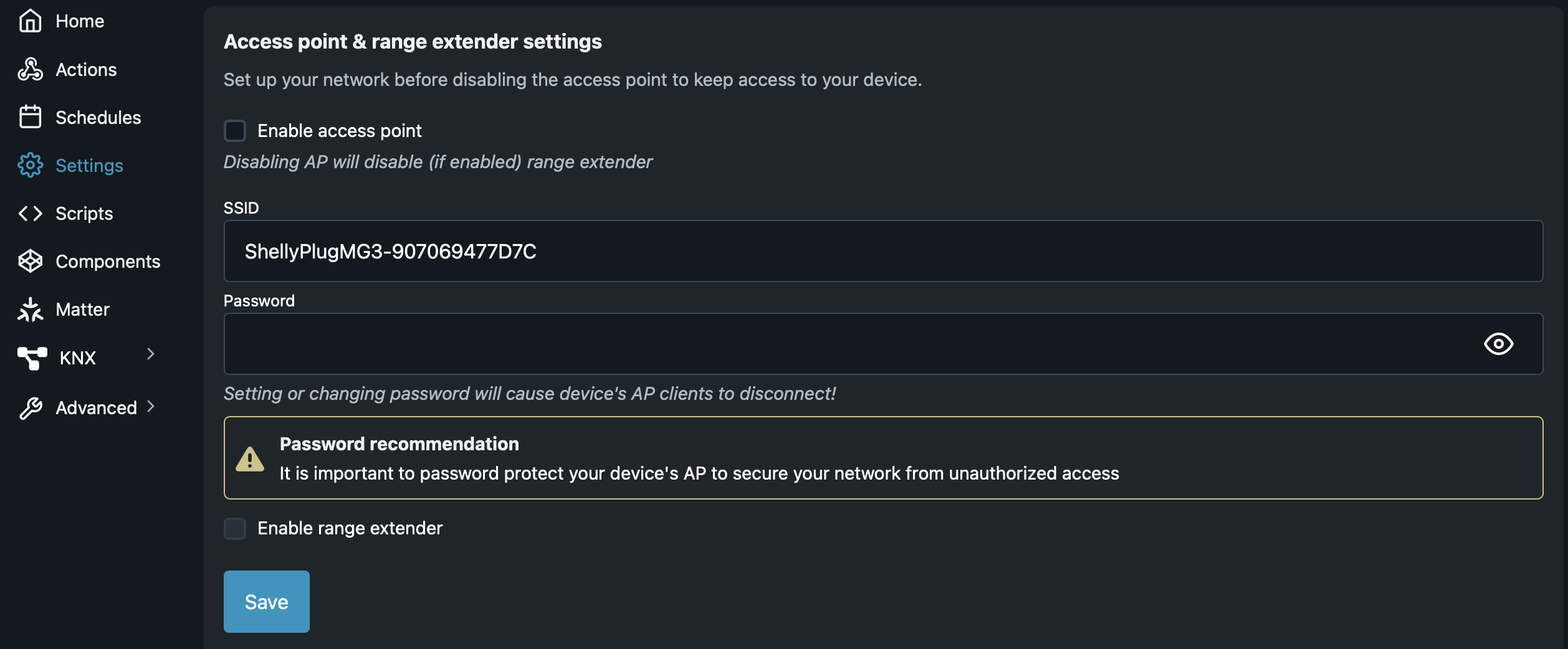 Für uns hier im Nerd-Universum ist das selbstverständlich, aber die Dinger werden als Konsumerware verkauft und viele Unwissende trauen sich sowas dann auch zu. Ob das vernünftig ist, sei dahingestellt. Grundsätzlich sehe ich es aber auch wie du: primär handelt es sich um einen Bedienfehler, wenn man den AP nicht abschaltet. Ob darauf deutlich genug hingewiesen wird im Lauf der Installation, kann ich nicht sagen: wenn ich mal ausnahmsweise Shelly Geräte installiere, gehe ich immer über die Weboberfläche und dort sieht man auf den ersten Blick in der rechten oberen Ecke, ob der AP an ist oder nicht. Ich finde es aber auch ein wenig bedenklich, dass Shelly diese “range extender” Funktion anbietet, für die man zwangsläufig den AP einschalten muss. Mich würde nicht wundern, wenn der eine oder andere denkt:”klasse, kostenloser range-extender” und vergisst, den AP zumindest mit einem brauchbaren PW zu sichern. Was aber auch wieder ein Bedienfehler wäre. Bei mir ist bei den wenigen Shelly Geräten alles abgeschaltet, was nicht gebraucht wird: Cloud, AP, Websocket, BT und meist auch MQTT.