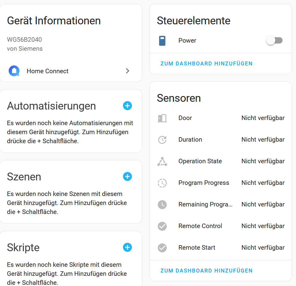 Ich versuche eine Siemens Home Connect Waschmaschiene zu integrieren.