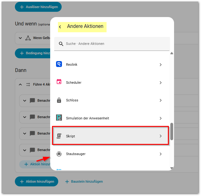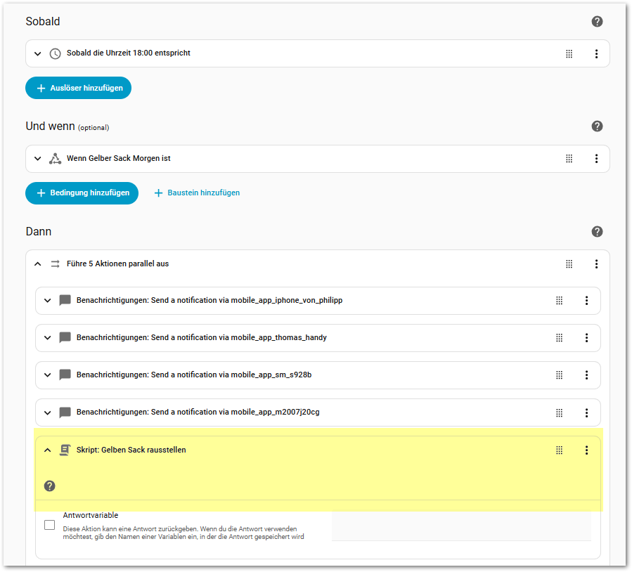 Wenn ich jedoch versuche dieses Skript in der Automation auszuführen, sieht das so aus: