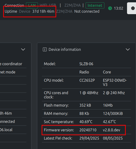 Als Zigbee Koordinator Firmware nutze ich gerade die Entwickler Version vom 20250321, da die letzte Version für nicht Entwickler die 20221226 ist.