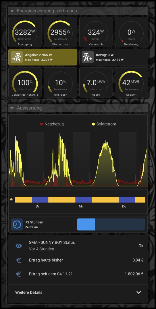 Also, es kann durchaus sein, das HA2000 Recht hat. Bei älteren SMA Wechselrichtern ist noch eine webconnect Netzwerkkarte verbaut, die weder über ein eigenes WebUI verfügt noch über einen frei zugänglichen Modbus. Damit kann man sich bei dann nur im Sunny Portal/ennexos anmelden (das sich die Daten irgendwie herunterlädt, ich habe keinen Prozess gefunden) bzw. über die Sunny Explorer App (BT oder Browser) seine Daten bekommt. Um bei dieser Konstellation Daten dann in HA zu laden, kann man über die HACS Integration SBFspot gehen, was allerdings nur alle 5 Minuten die WR Daten über BT bezieht.