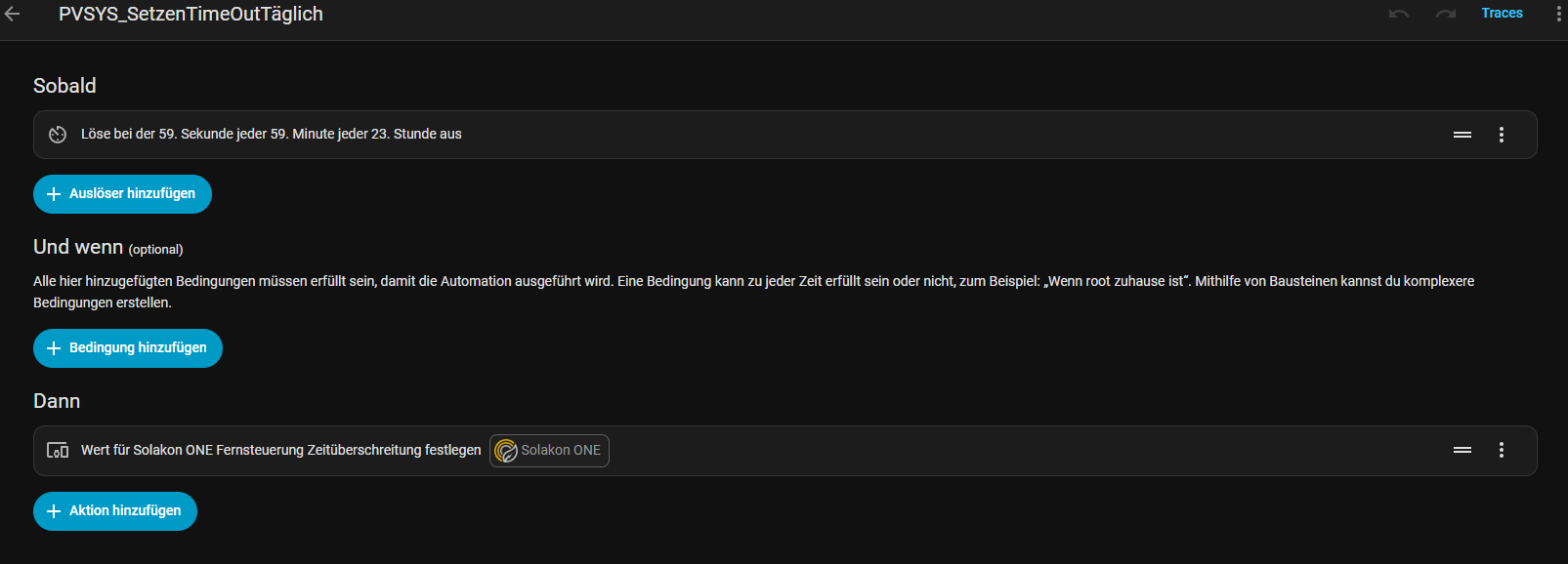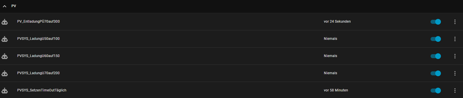 ich bastle gerade auch an einer Automation für meinen Solakon One.. ich versuche es gerade mit KI, bin aber noch nicht glücklich damit.Er speist noch zuviel ins Netz ein.. im moment steuere ich den Wechselrichter Modus manuell, aber das ist nicht die Lösung. .. ich würde mir auch gerne deine Automation zur Hilfe nehmen..