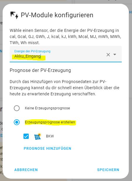 eine zuvor erstellte Prognose mit “Forecast Solar” können wir hier übernehmen…