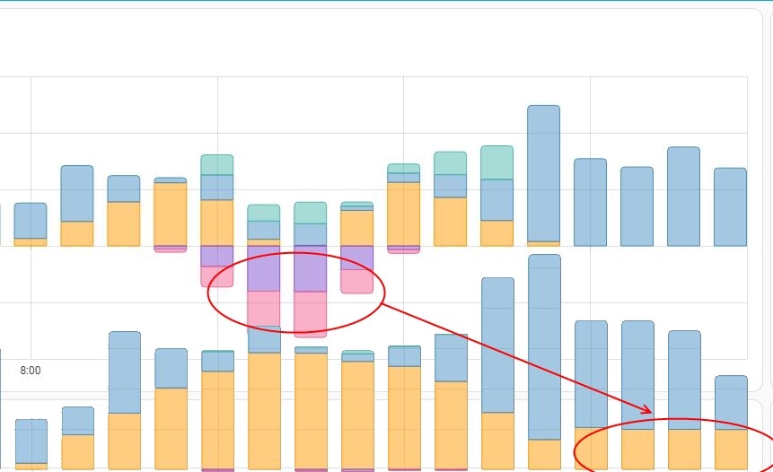 hier mal das Ergebnis von gestern (unterer Graph) im Vergleich zum Vortag (oberer Graph) ohne Akku.