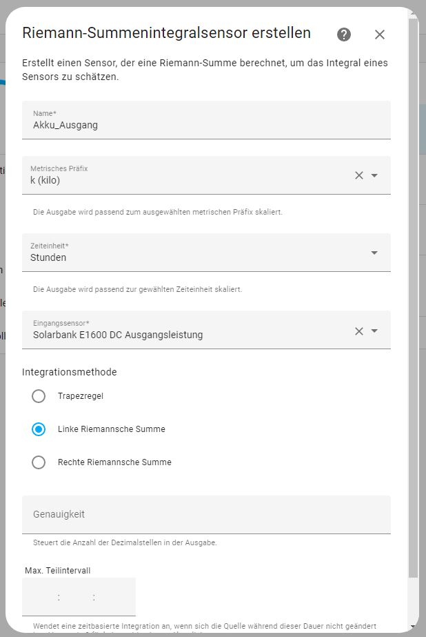 Einen Helfer zur DC Ausgangsleistung anlegen. Linkes Riemannsches Summenintegral. Dann machst du aus der Leistung über die Zeit die Energie. Diesen Helfer kannst du dann im Energiedashboard einbinden.