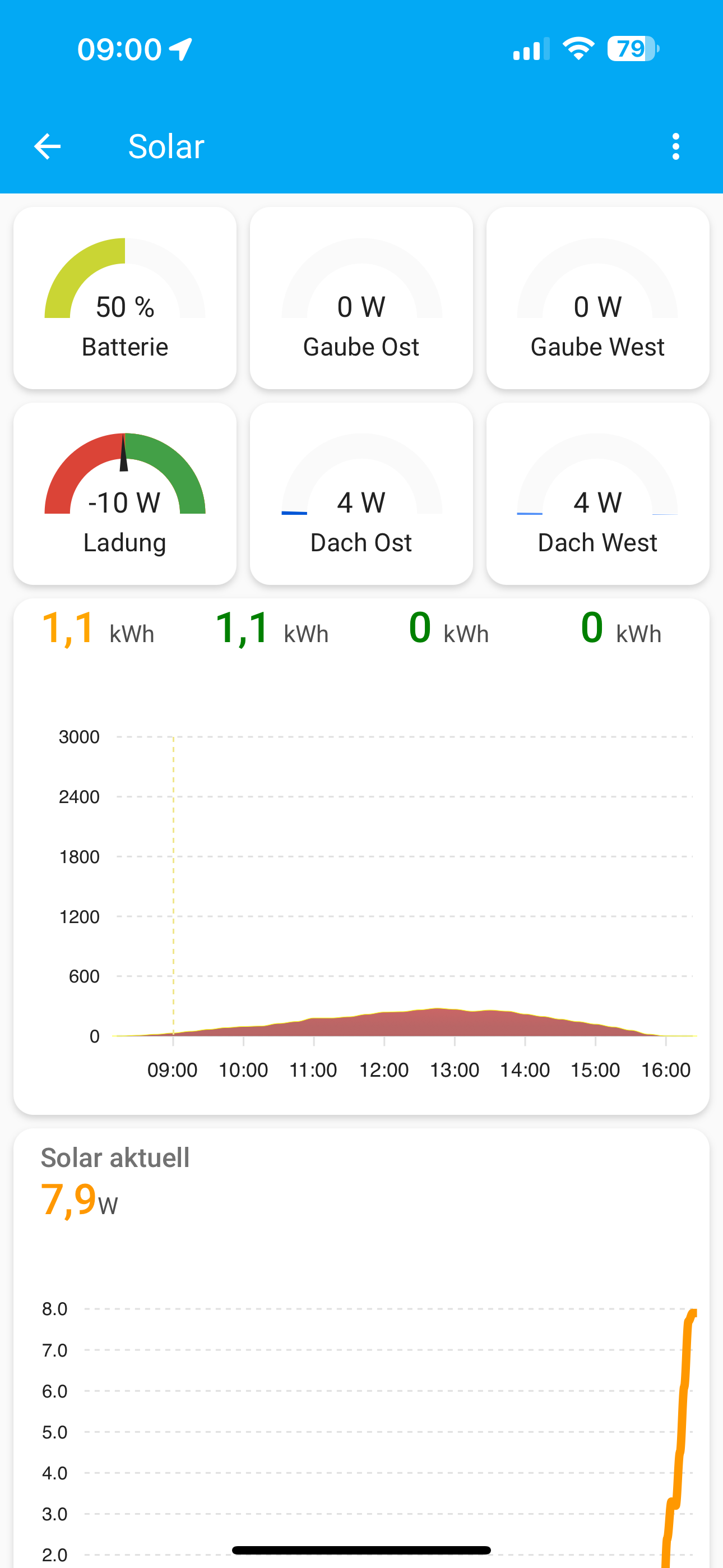 Da ich zwei Dachhälften mit Solarmodulen bestückt habe, habe ich beide Meteo-Solar Einträge zusammengezählt: